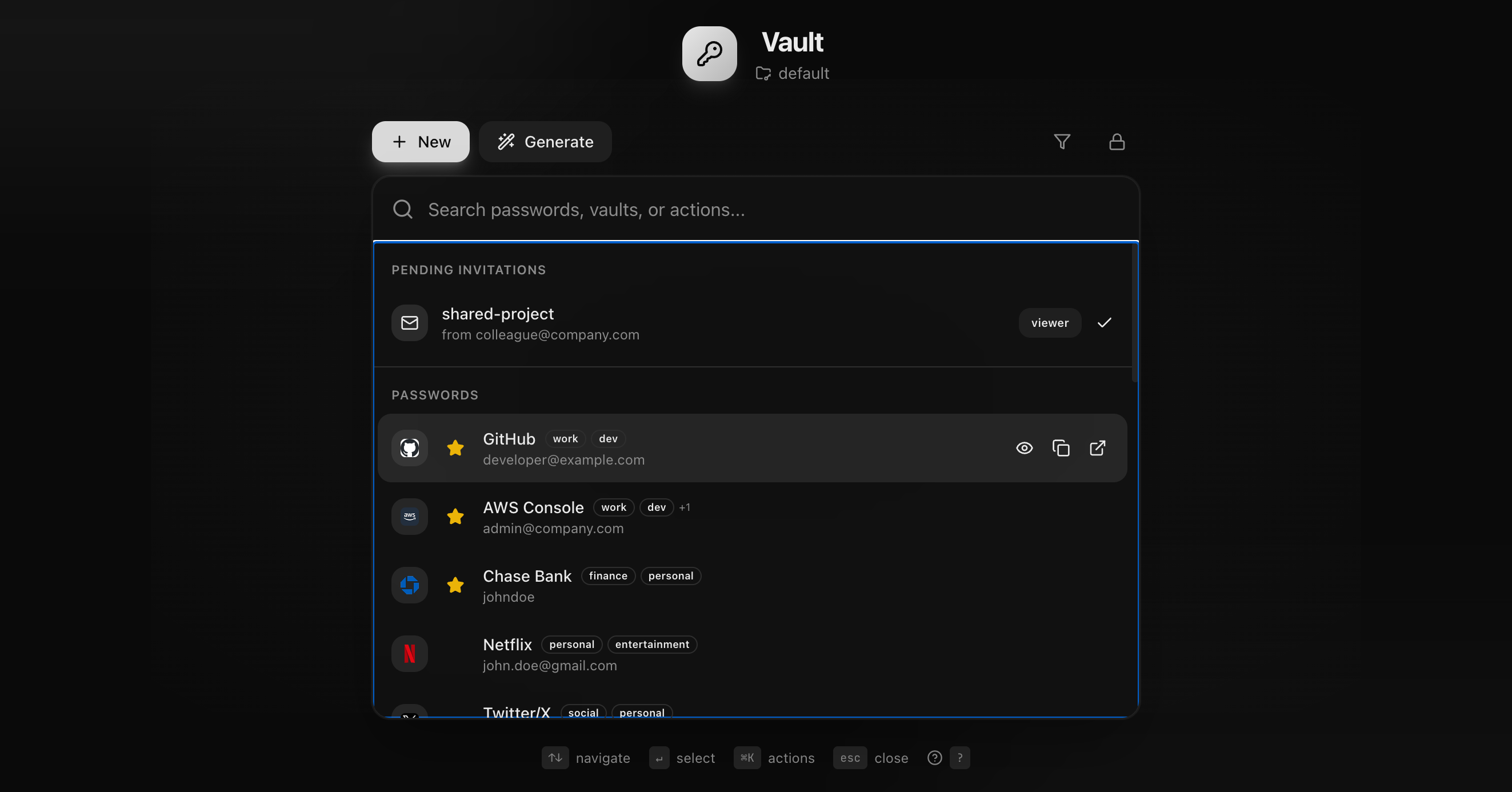 Zero-knowledge password manager with passkey authentication, end-to-end encryption, and secure vault sharing.